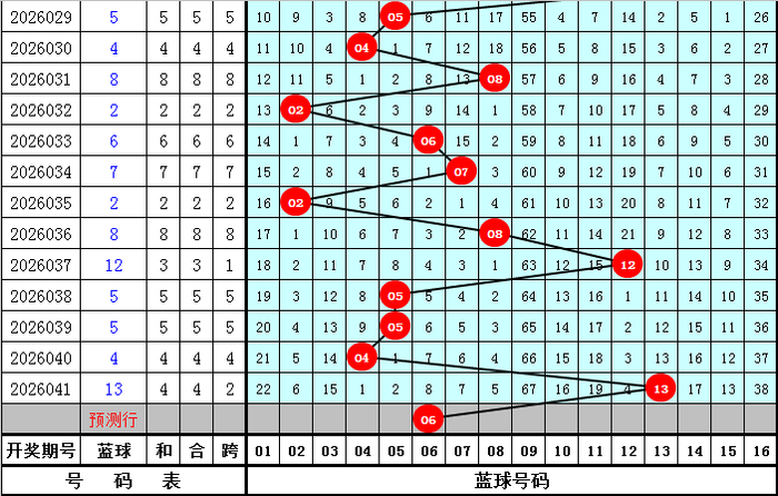 双色球第2026041期开出奖号为:02、08、10、17、19、24+13,其中红球三区比为3:2:1,蓝球开出奇数、大号、1路号码。